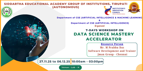 7-Days Workshop on Data Science Mastery Accelerator on 27.11.25 onwards